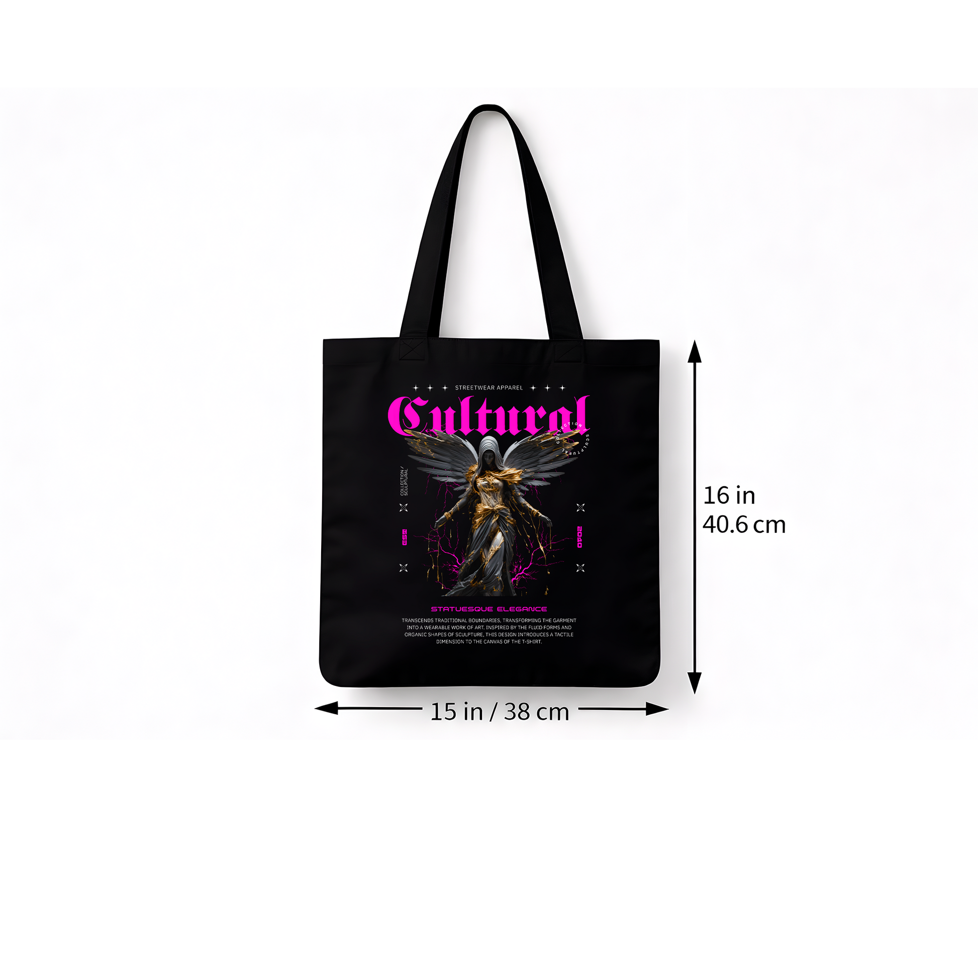 Sac Tote Bag Noir “Cultural Angel” – Tote Bag Streetwear Premium en Coton