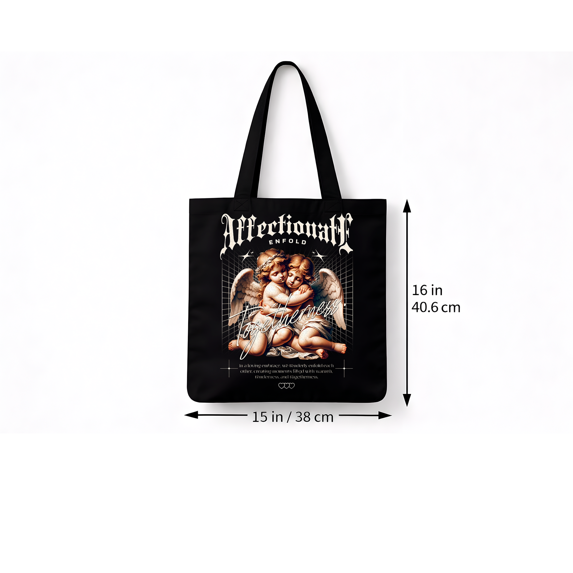 Tote Bag Streetwear “Affectionate Enfold” – Sac en tissu noir imprimé DTF